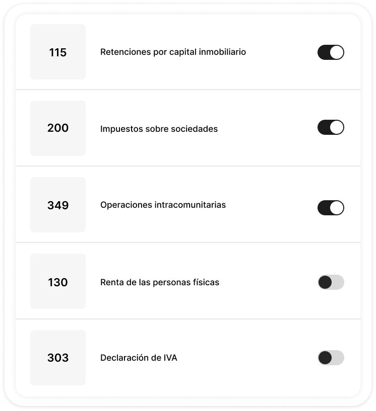 Genera y envía tus modelos de impuestos con Facturavia. Accede a diferentes opciones como el 200, 202, 303, 347, entre muchos más.