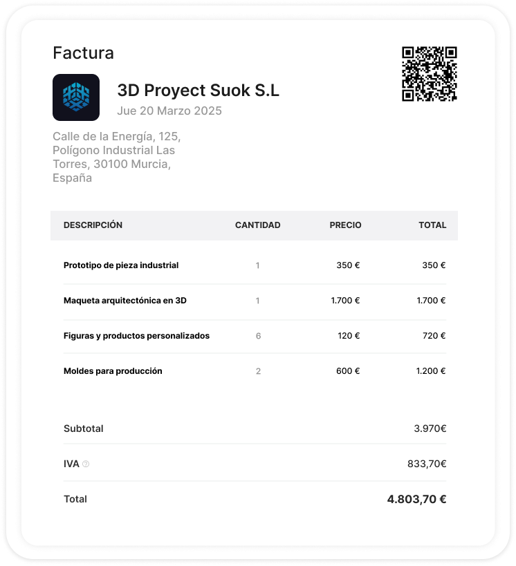 Visualiza el IVA y los totales sin sorpresas. Todo claro, desde el primer momento.